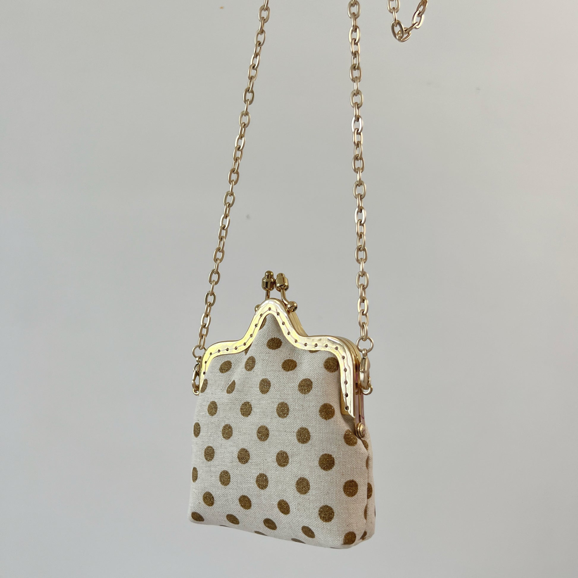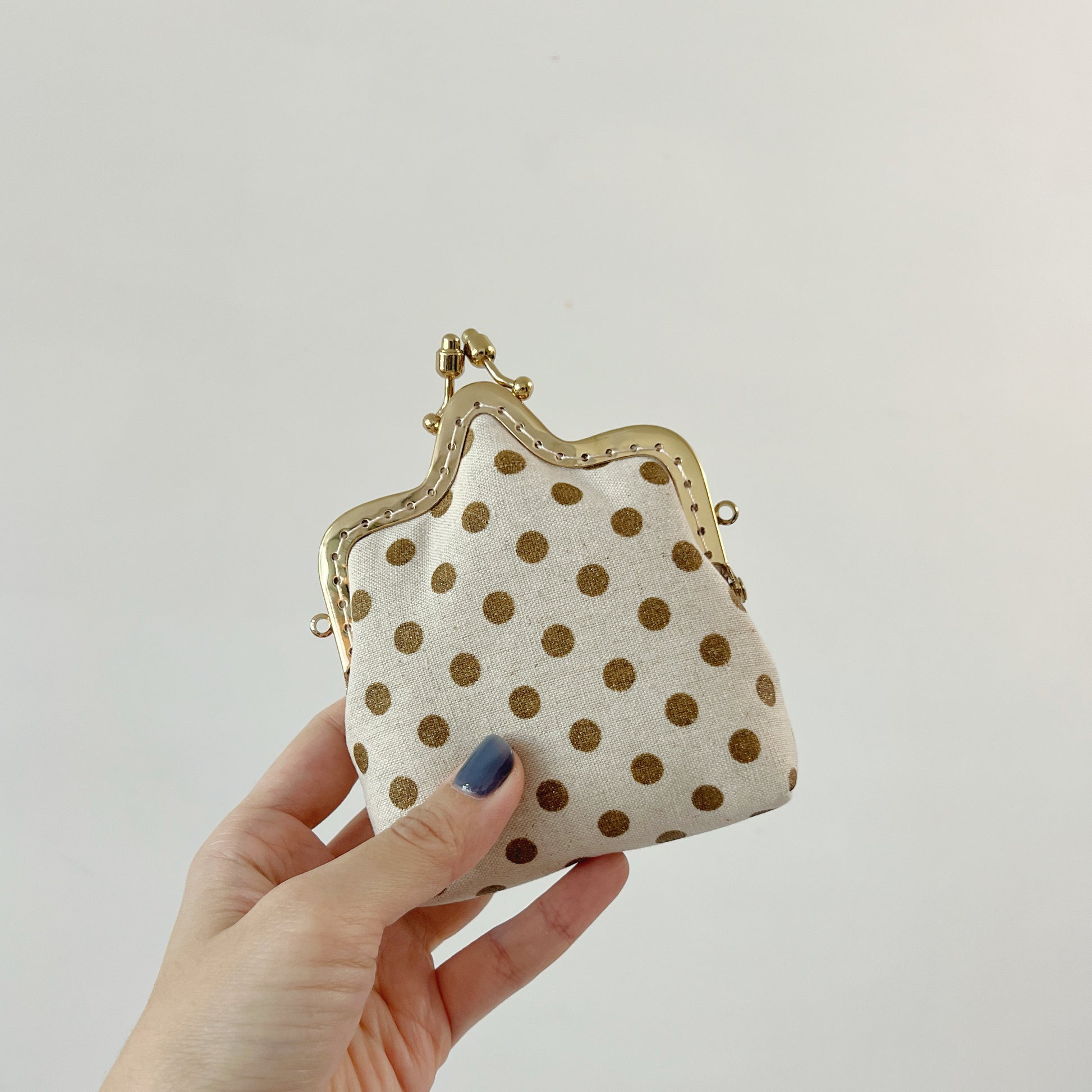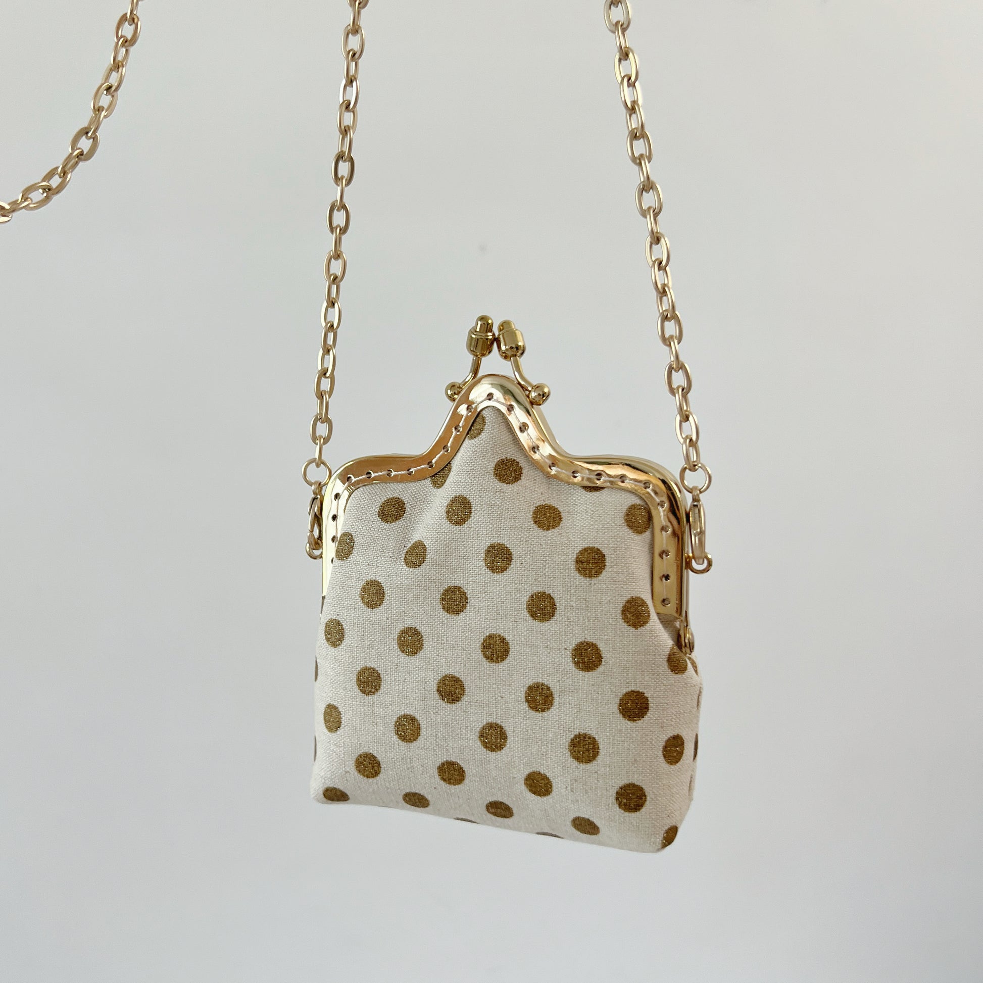Gold Polka Dots - Handmade Kiss Lock Crossbody Small Purse