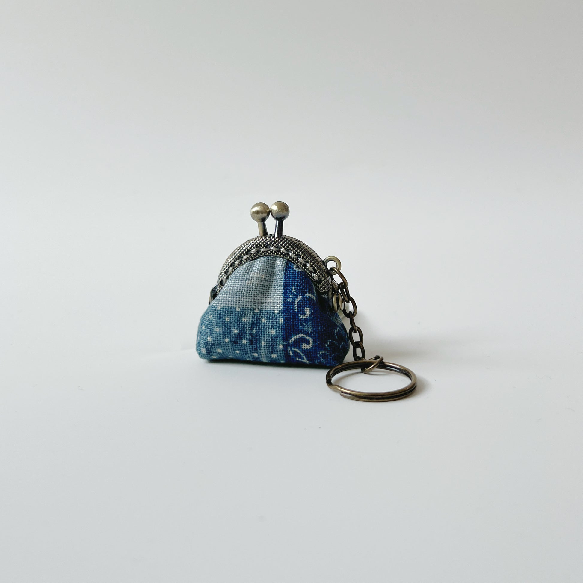 Blue Patches - Handsewn Half Round Tiny Kiss Lock Purse Keychain