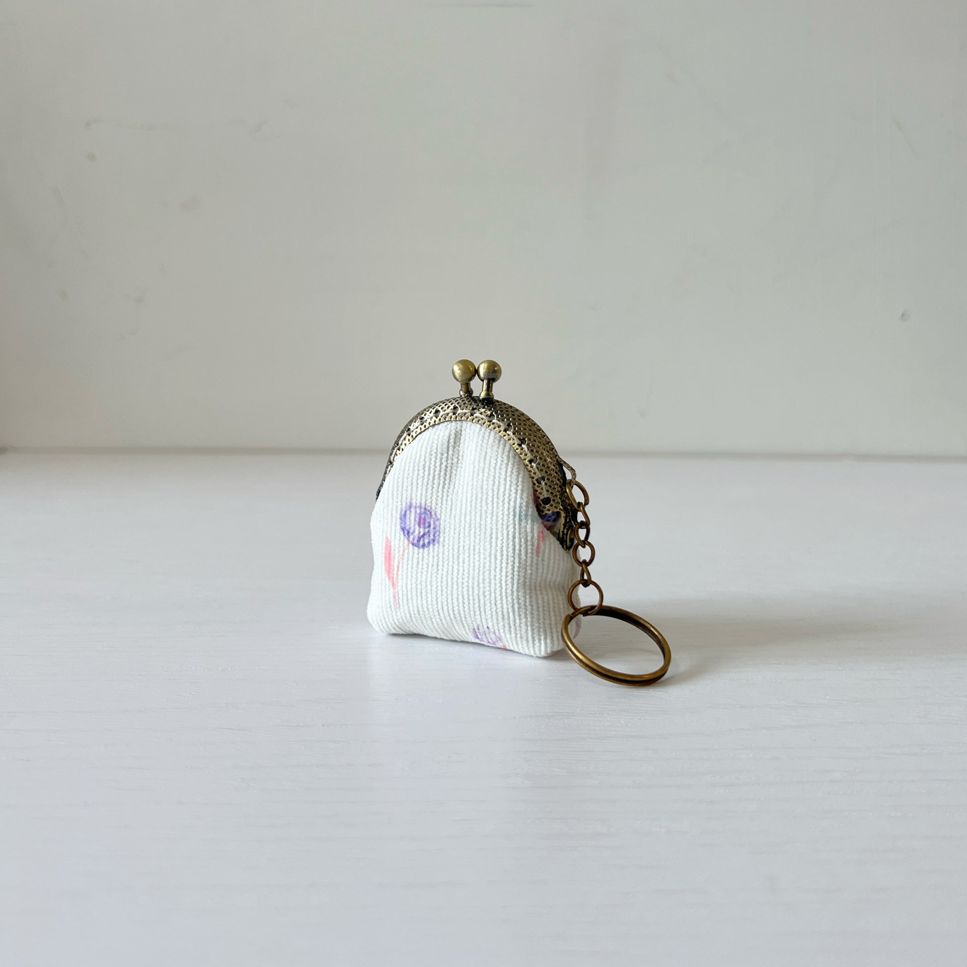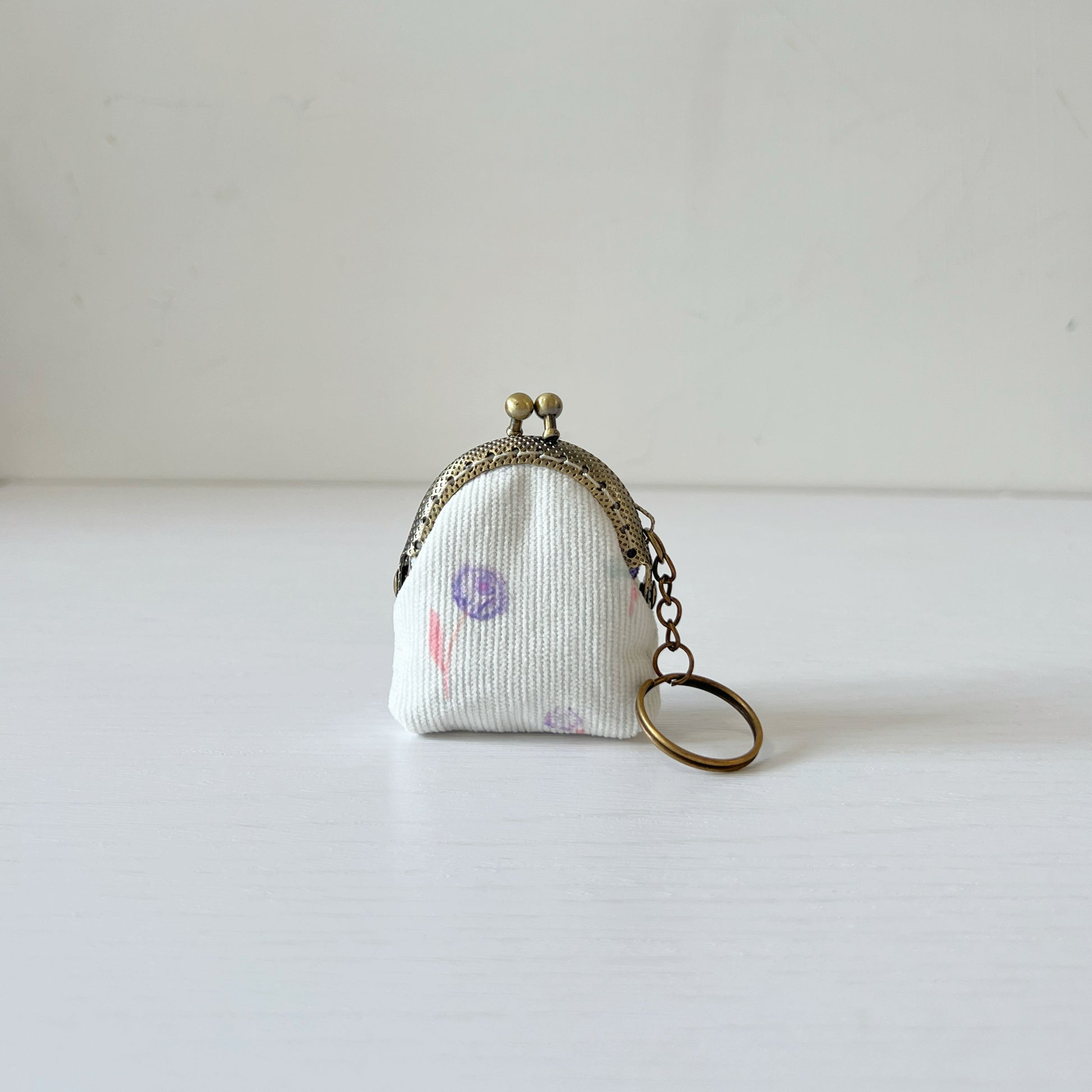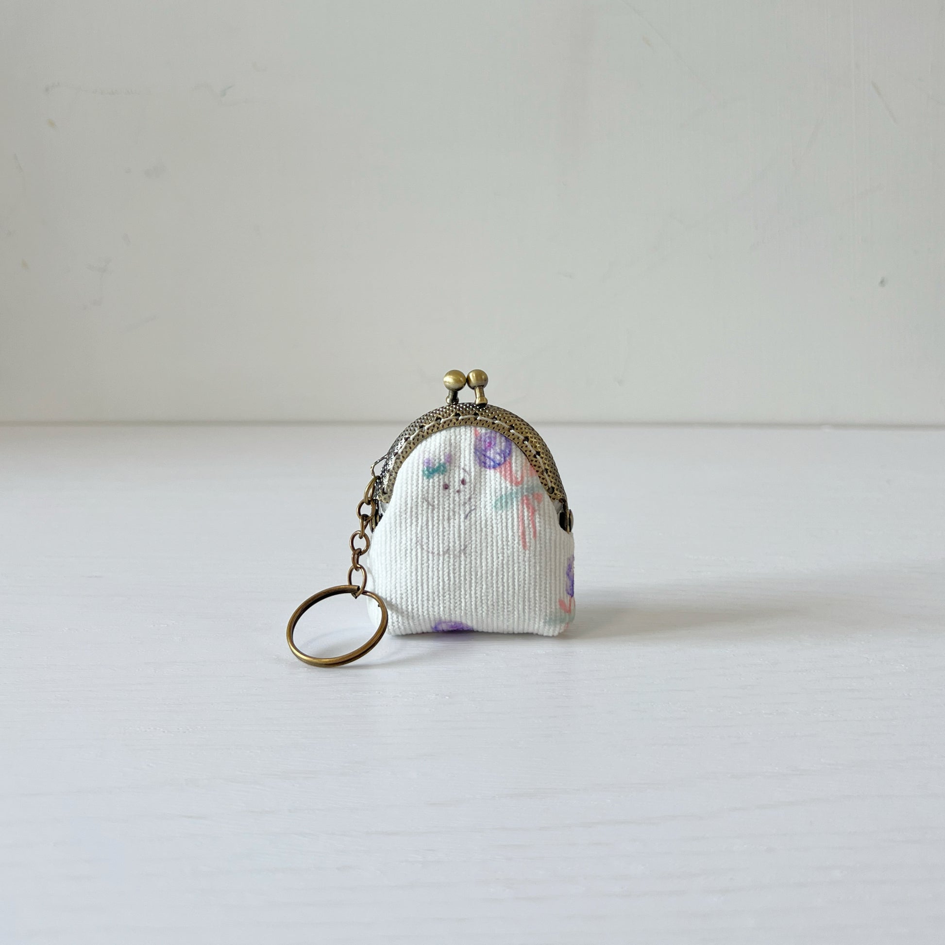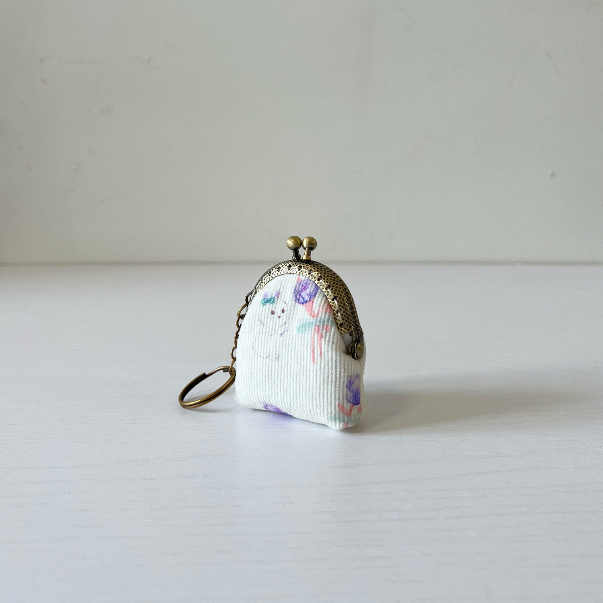 White Bunny - Handsewn Half Round Tiny Kiss Lock Purse Keychain