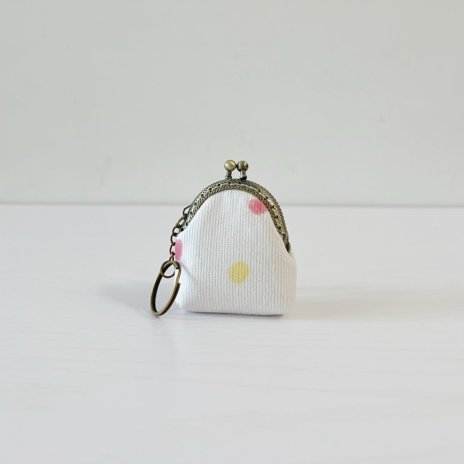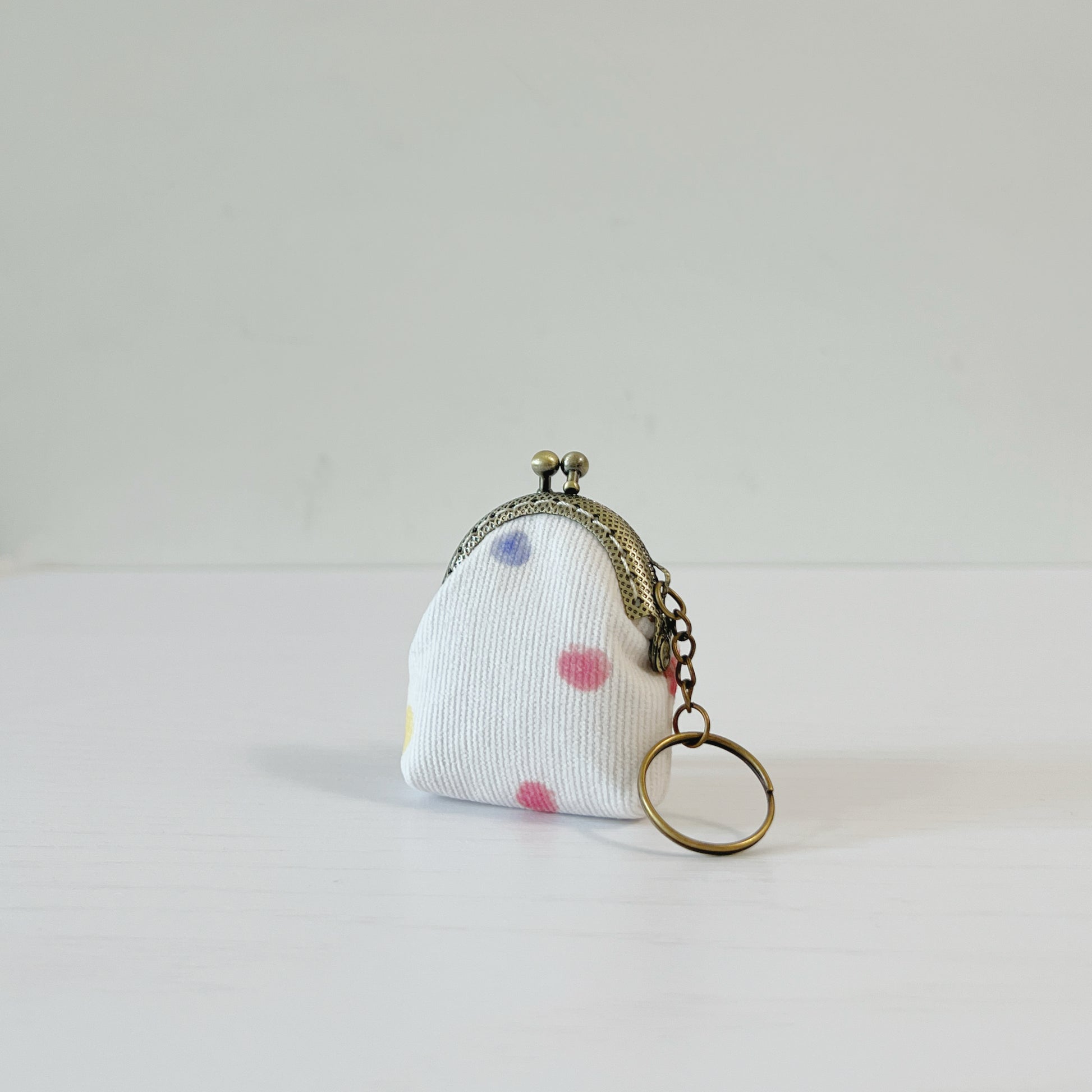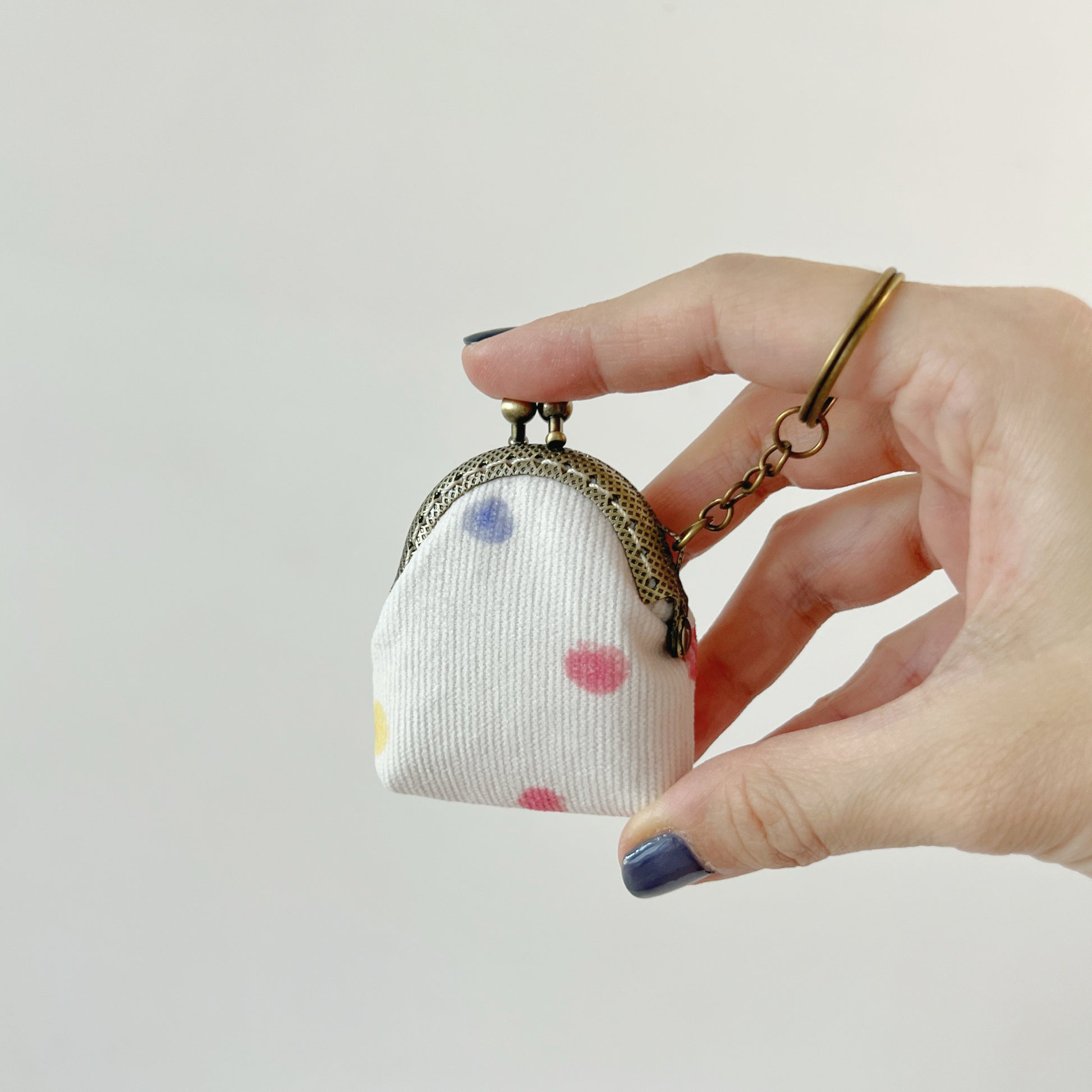 Pastel Polka Dots - Handsewn Half Round Tiny Kiss Lock Purse Keychain