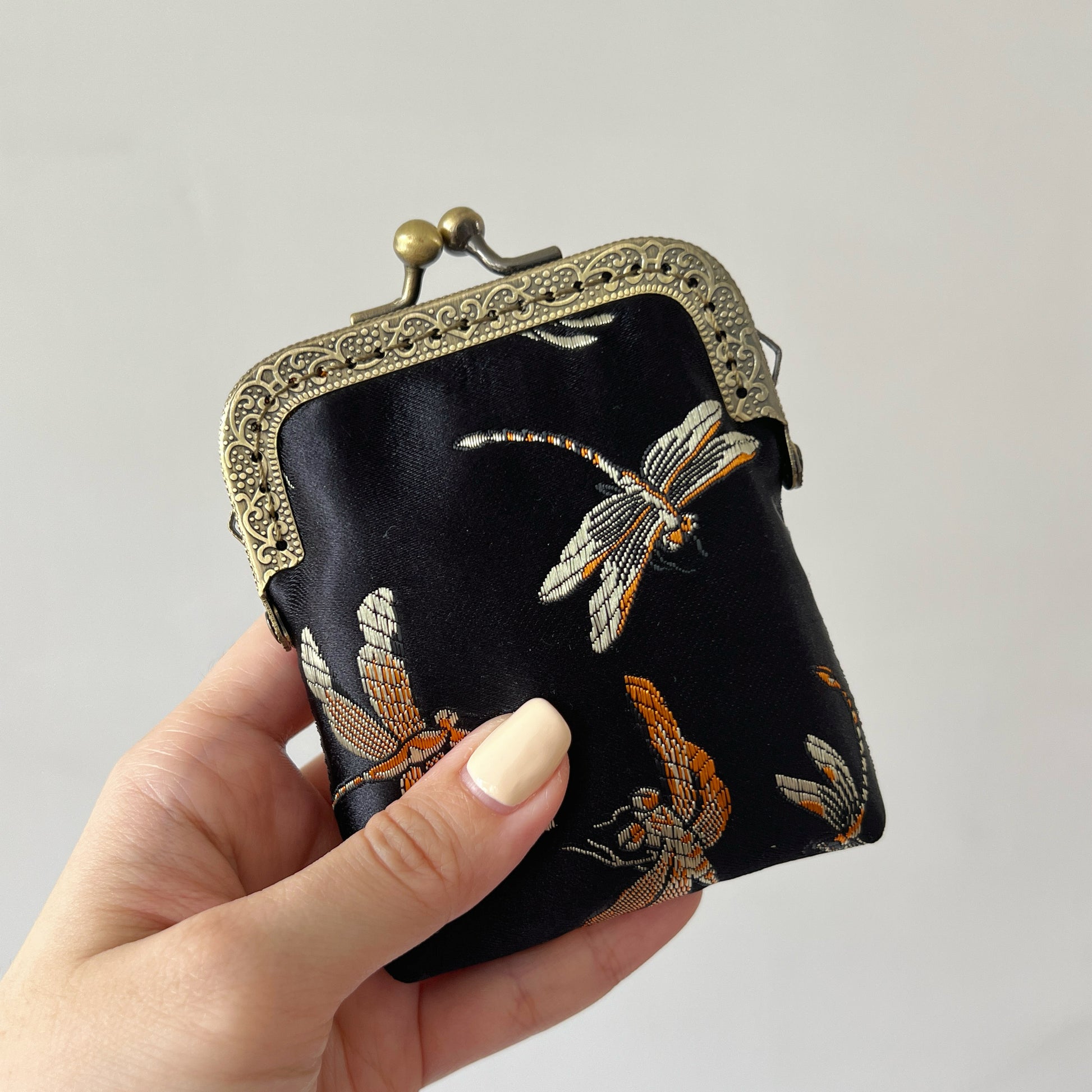 Black Dragonfly - Handmade Kiss Lock Card Purse