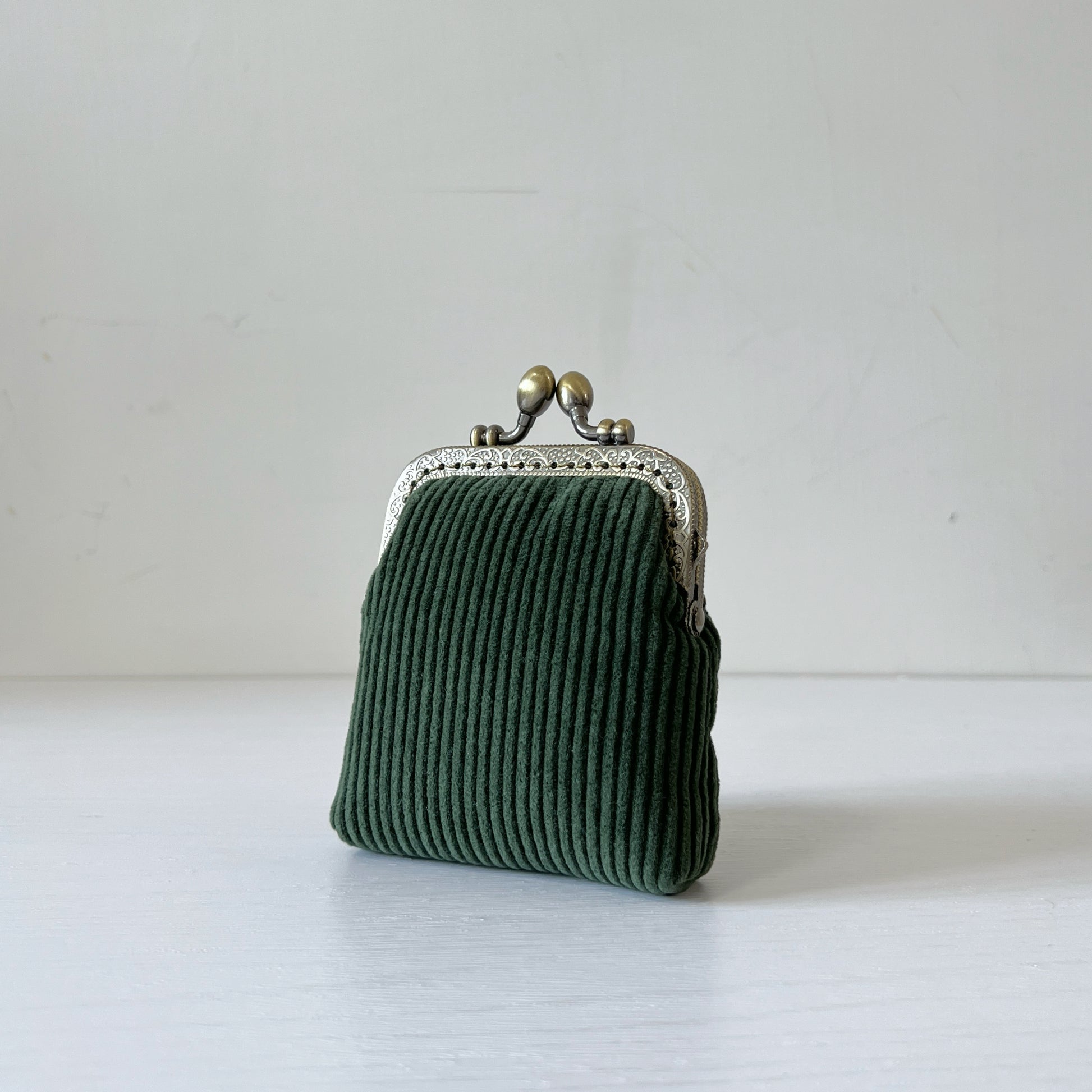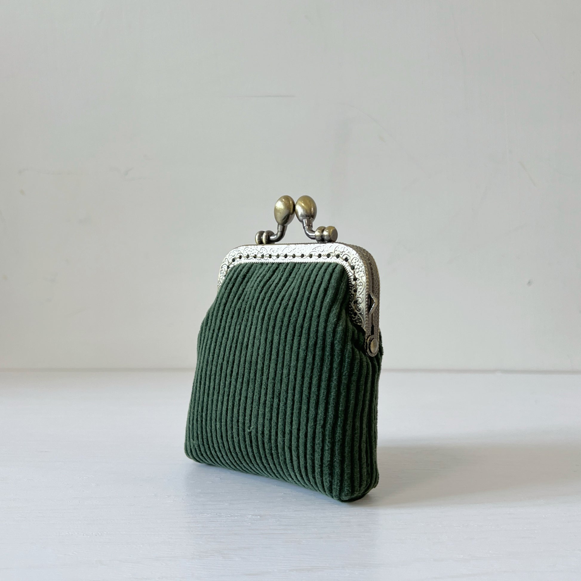 Green Corduroy Card Purse - Handsewn Kiss Lock Purse