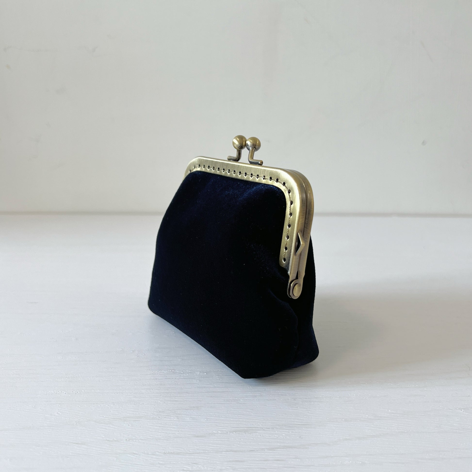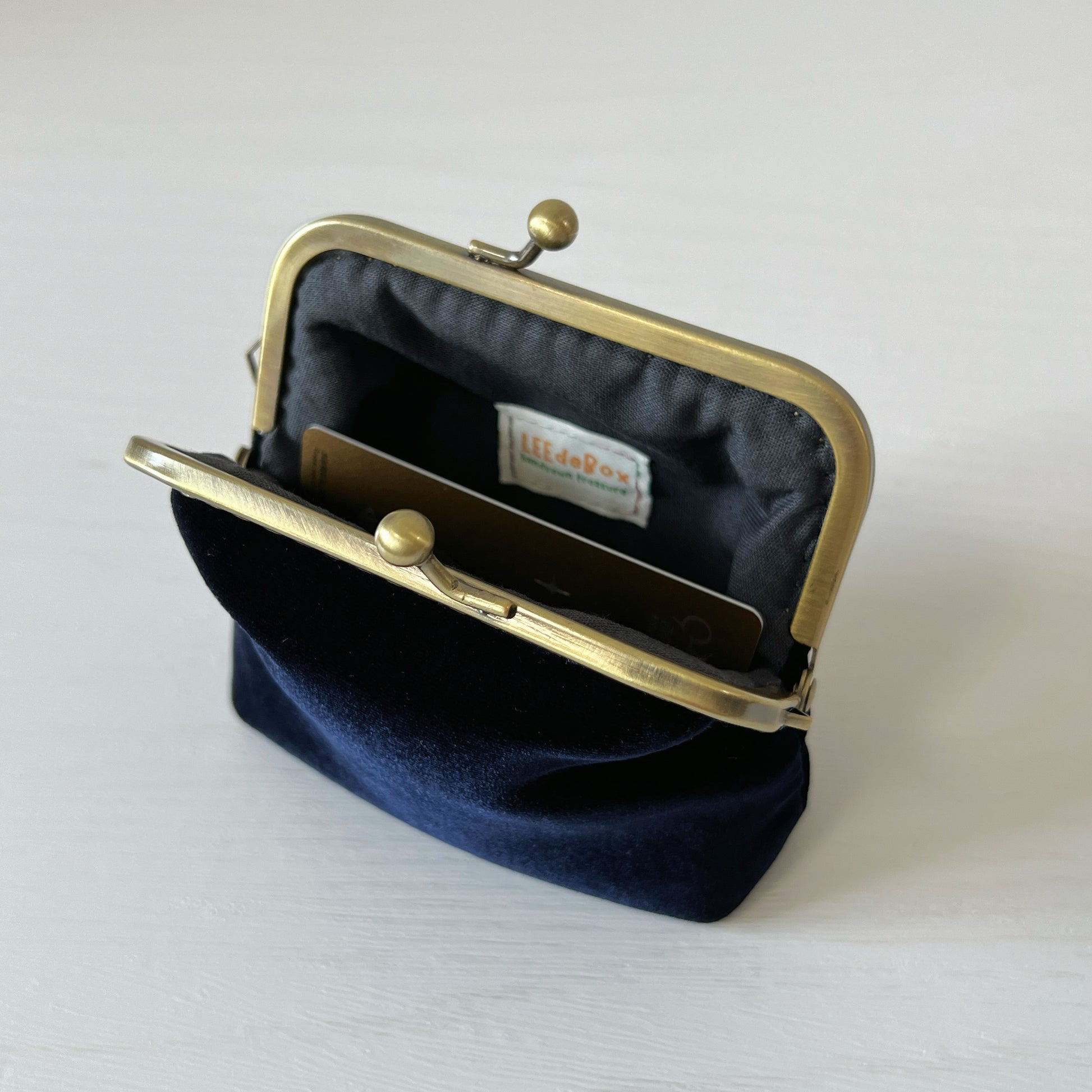 Deep Blue Flannel Velvet Card Purse - Handsewn Kiss Lock Purse